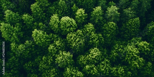 © Generative AI, Naklejka premium Lush green forest canopy viewed from above showcasing vibrant natural tranquility : Generative AI