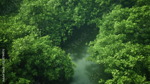 © Yopi, Obraz premium Lush Green Forest Canopy With Light Particle Shower