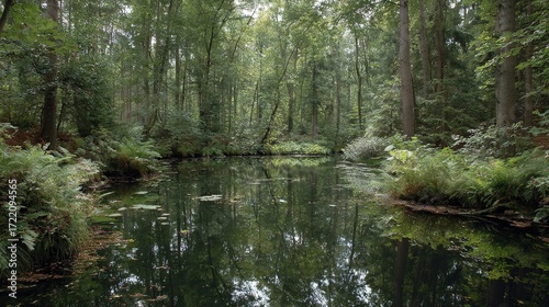 © Olga, Fototapeta premium Lush green forest filled with lots of green plants