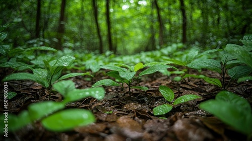 Obraz premium Lush green forest floor, vibrant seedlings