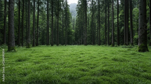 © danadesa, Obraz premium Lush Green Forest Meadow, Tranquil Scenery, Nature's Embrace, Peaceful