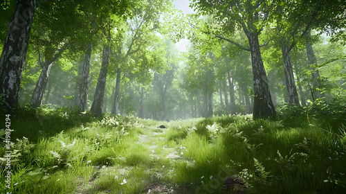 © predator, Obraz premium Lush Green Forest Path In Sunlight