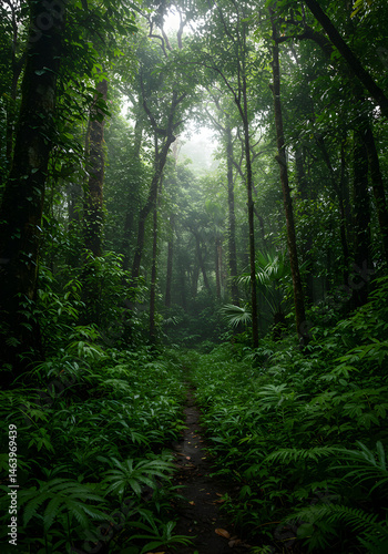 © Siasart, Obraz premium Lush Green Forest Path Photo Featuring Trees Sunlight and Nature
