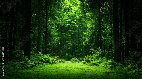 © Arthur Constantine, Obraz premium Lush Green Forest Path Sunlight