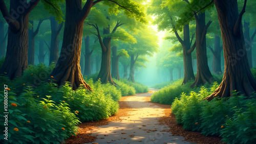 © Tamas, Fototapeta premium Lush Green Forest Pathway