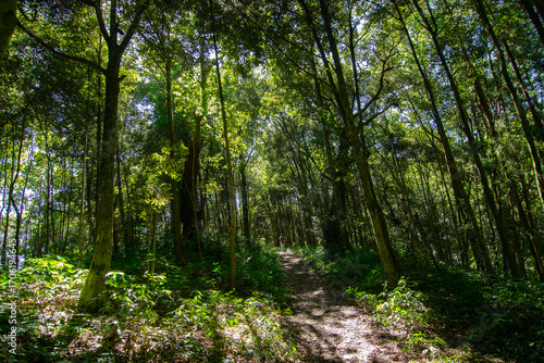© mitrarudra, Obraz premium Lush green forest Poison Lake, Poison Pokhari. Lepchas,natives poisoned water of pond, main source of water using herbs, thus killing almost half of exploring British army. Rinchenpong, Sikkim, India.