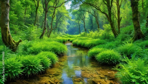 © BOJOShop, Obraz premium Lush Green Forest Stream.