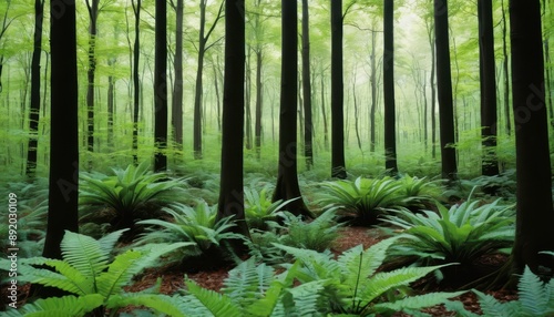 © BOJOShop, Fototapeta premium Lush Green Forest with Ferns.