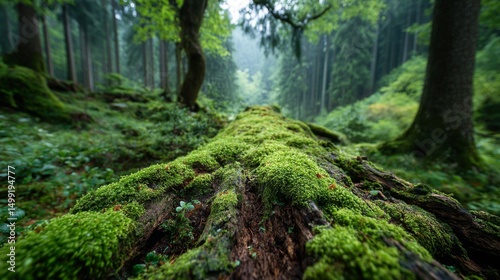 © UtkarshBay, Fototapeta premium Lush Green Forest with Moss Covered Log
