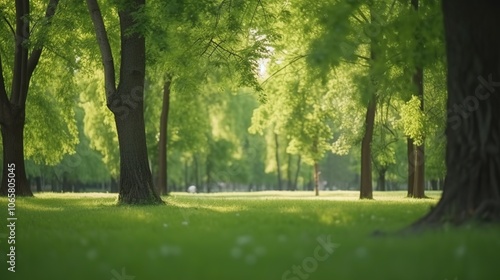 © CLOVER BACKGROUND, Obraz premium Lush Green Forest with Sunlight Through Trees