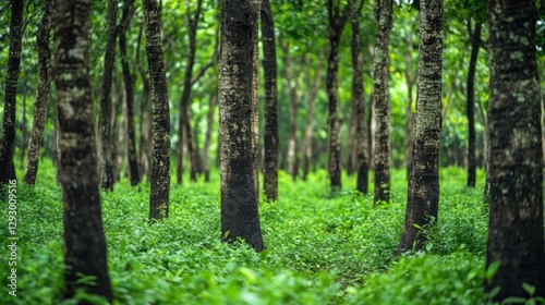 © Zaidi, Obraz premium Lush Green Forest with Tall Trees and Dense Underbrush in Nature