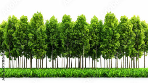 Fototapeta premium lush green forest with tall trees, isolated on a white background, vibrant greenery and thick foliage