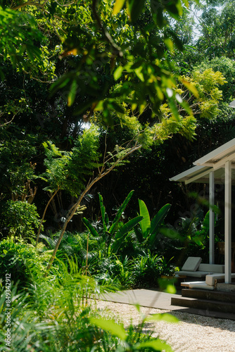 © heerim studio, Obraz premium Lush Green Garden with Sunlit Path