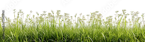 © NightTampa, Obraz premium Lush green grass and delicate white flowers against a clear, isolated on a white backdrop