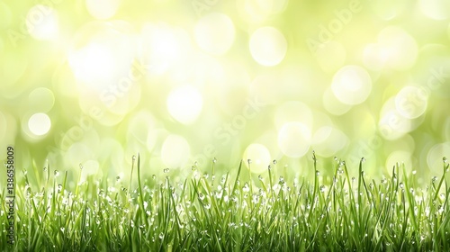 © admin_design, Fototapeta premium Lush green grass background with soft bokeh effect for springtime wallpapers