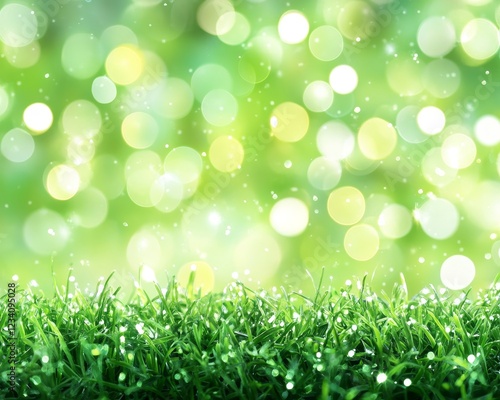 Obraz premium Lush Green Grass, Bokeh Lights, and Vivid Colors in a Sunny Meadow Scene, 8K...