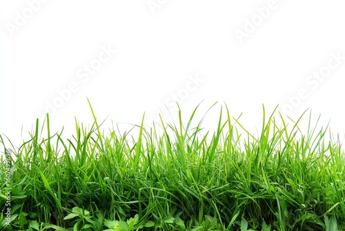 Fototapeta premium Lush green grass border against white background