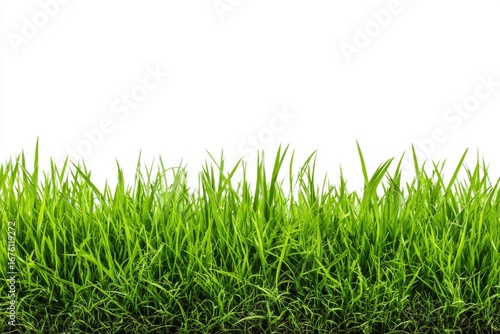 Fototapeta premium Lush green grass border against white background (1)