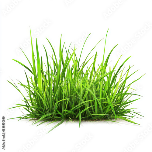 © farjana, Obraz premium Lush green grass cluster isolated on white background vibrant spring nature scene bright color palette clean image