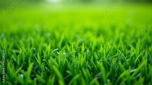 Fototapeta premium ) Lush green grass covering a vibrant landscape, showcasing its rich texture...