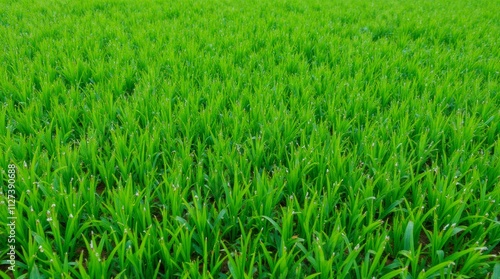 Obraz premium ) Lush green grass covering a vibrant landscape, showcasing its rich texture and color, ideal for outdoor photography and nature-themed projects, emphasizing freshness and vitality.