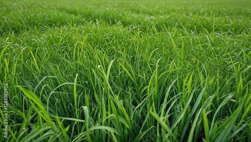 Obraz premium Lush Green Grass Field Texture Ideal for Natural Background and Blank Space...