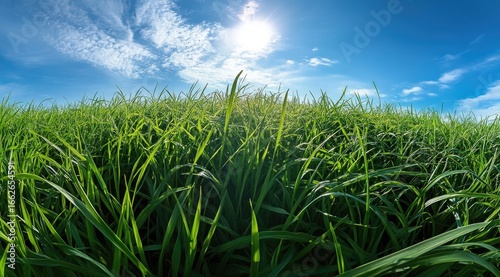 Fototapeta premium Lush green grass field under a vibrant blue sky (3)