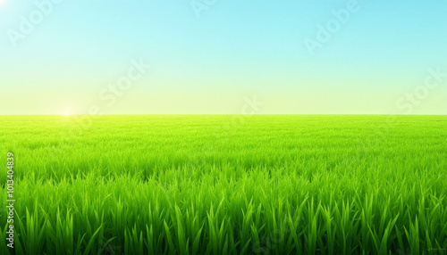 Fototapeta premium Lush Green Grass Field Under Clear Blue Sky