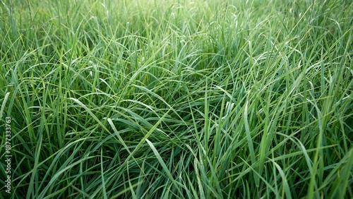 Obraz premium Lush Green Grass Field with Soft Natural Lighting and Vibrant Foliage