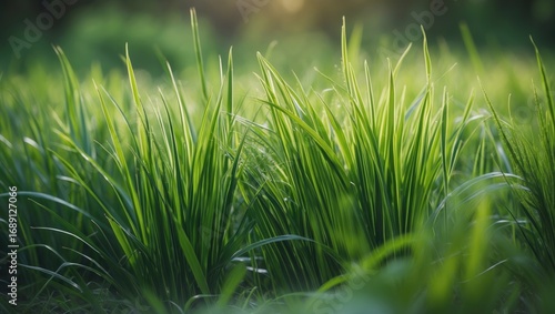 Obraz premium Lush green grass in a field, vibrant and fresh. Nature and vegetation,...