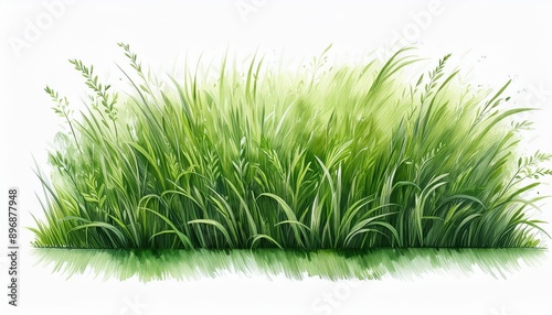 © stockpro, Obraz premium Lush green grass isolated on a white background. Perfect for adding a touch of nature to your designs.
