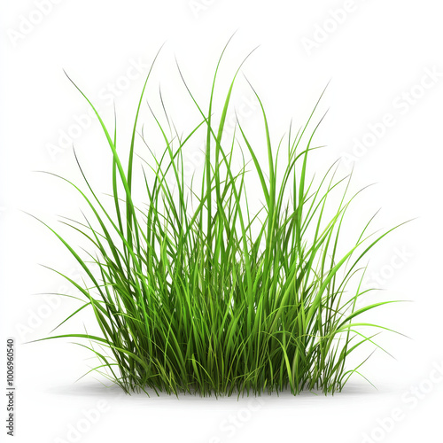 Obraz premium Lush green grass isolated on white background, showcasing vibrant blades that evoke sense of freshness and natures beauty. Perfect for various design projects