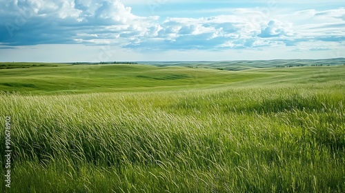 Obraz premium Lush green grass on field and hill grasslands national park val marie saskatchewan canada : Generative AI