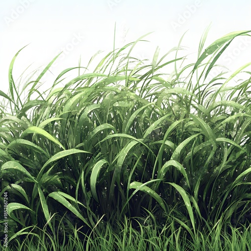 © Sagar, Obraz premium Lush green grass swaying gently, nature's soft carpet under a gentle sky.
