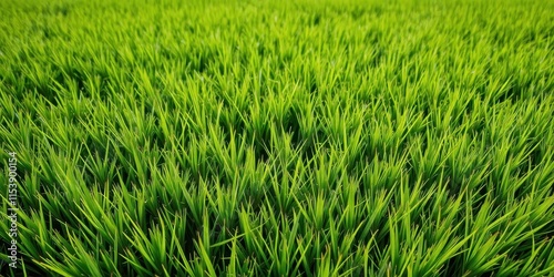 Obraz premium Lush green grass texture, vibrant emerald hue, sunlit meadow, tranquility,...