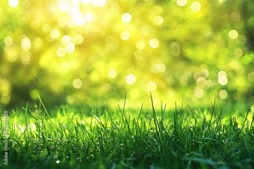 Fototapeta premium Lush Green Grass Under Golden Sunlight