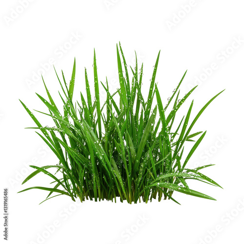 Fototapeta premium Lush green grass with droplets of water, showcasing a vibrant and fresh appearance. isolated on white background.