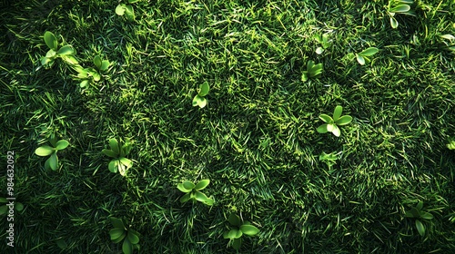 © Arieswanto, Obraz premium Lush Green Grass with Sprouting Plants