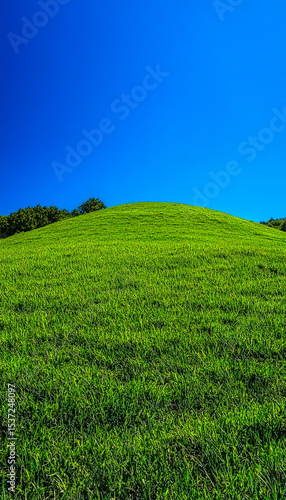Naklejka premium Lush green grassy hill under a bright blue sky