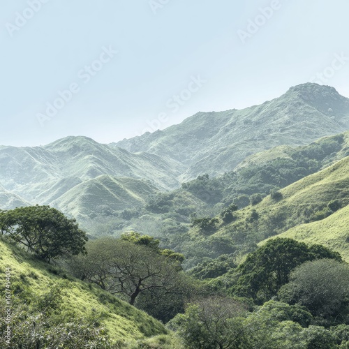 © Ichsan, Naklejka premium Lush green hills and valleys, soft light