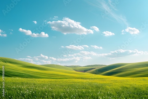 © Valentin, Obraz premium Lush Green Hills Under a Bright Blue Sky
