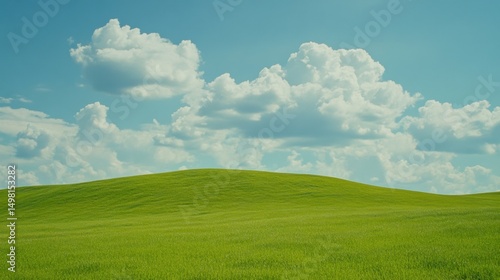 © Fauzerene, Fototapeta premium Lush Green Hills Under a Bright Blue Sky with Fluffy White Clouds