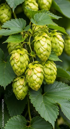 © Jaya, Fototapeta premium Lush Green Hops on the Vine Ready for Brewing.