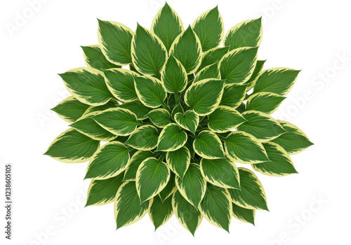 Fototapeta premium Lush green hosta plant leaves with cream-colored edges, isolated on white background
