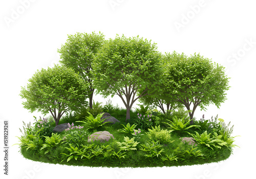 © Saqib, Fototapeta premium Lush Green Island of Trees and Shrubs isolated on transparent baackground