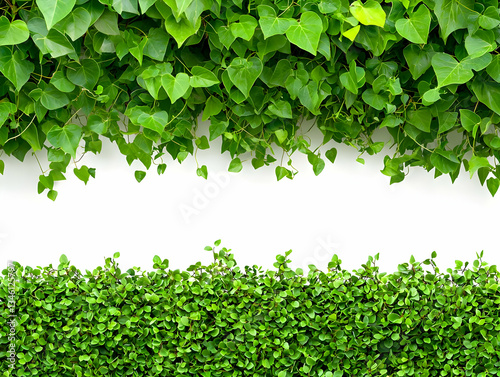 © Homestock Studio, Obraz premium Lush green ivy and hedge border on white. Perfect for design