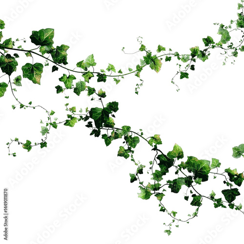 © Tung's companion, Fototapeta premium Lush Green Ivy Vine on Olive Green Transparent background - Natural Texture and Design Element