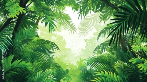 © Biancaart, Fototapeta premium Lush Green Jungle Canopy with Sunlight Filtering Through the Foliage
