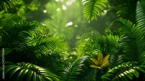© Arthur Constantine, Fototapeta premium Lush Green Jungle Foliage with Vibrant Light and Plant Life