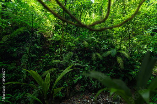 © quickshooting, Fototapeta premium Lush green jungle with dense trees and plants in a tropical environment
